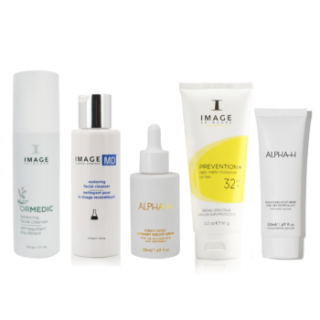 Als eerste reiniger adviseren wij de ORMEDIC Balancing Facial Cleanser van IMAGE Skincare. Deze reiniger bevat milde en kalmerende ingrediënten, zoals Aloë Vera.